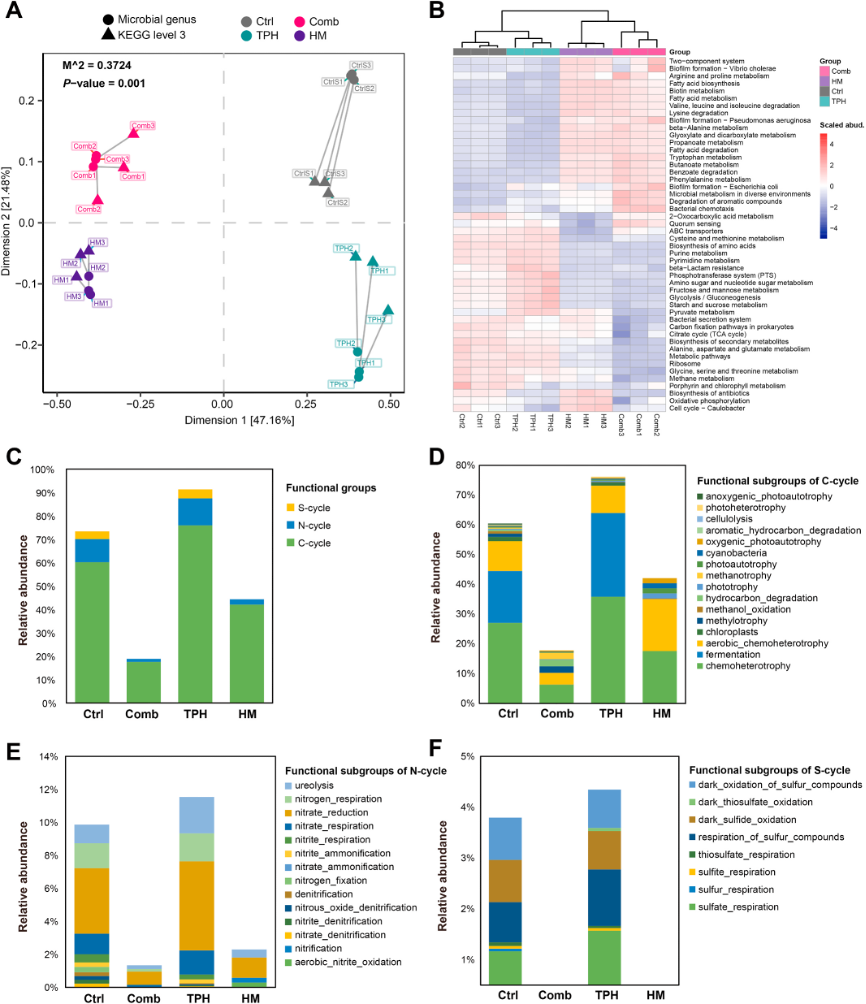 圖5:Ctrl組、TPH組、HM組和Comb組的微生物群落功能差異。