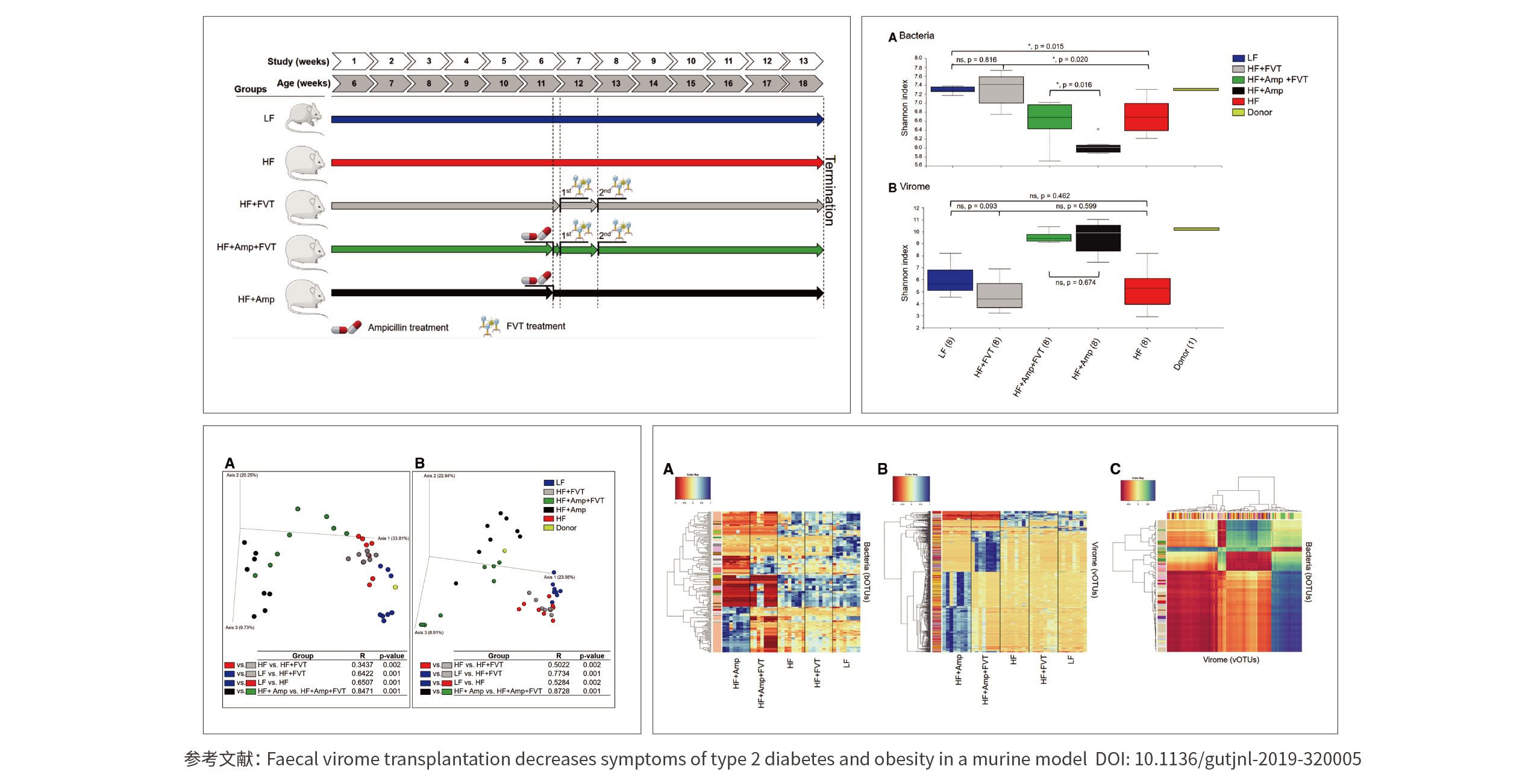 ① Faecal virome transplantation decreases symptoms of type 2 diabetes and obesity in a murine model DOI: 10.1136/gutjnl-2019-320005
